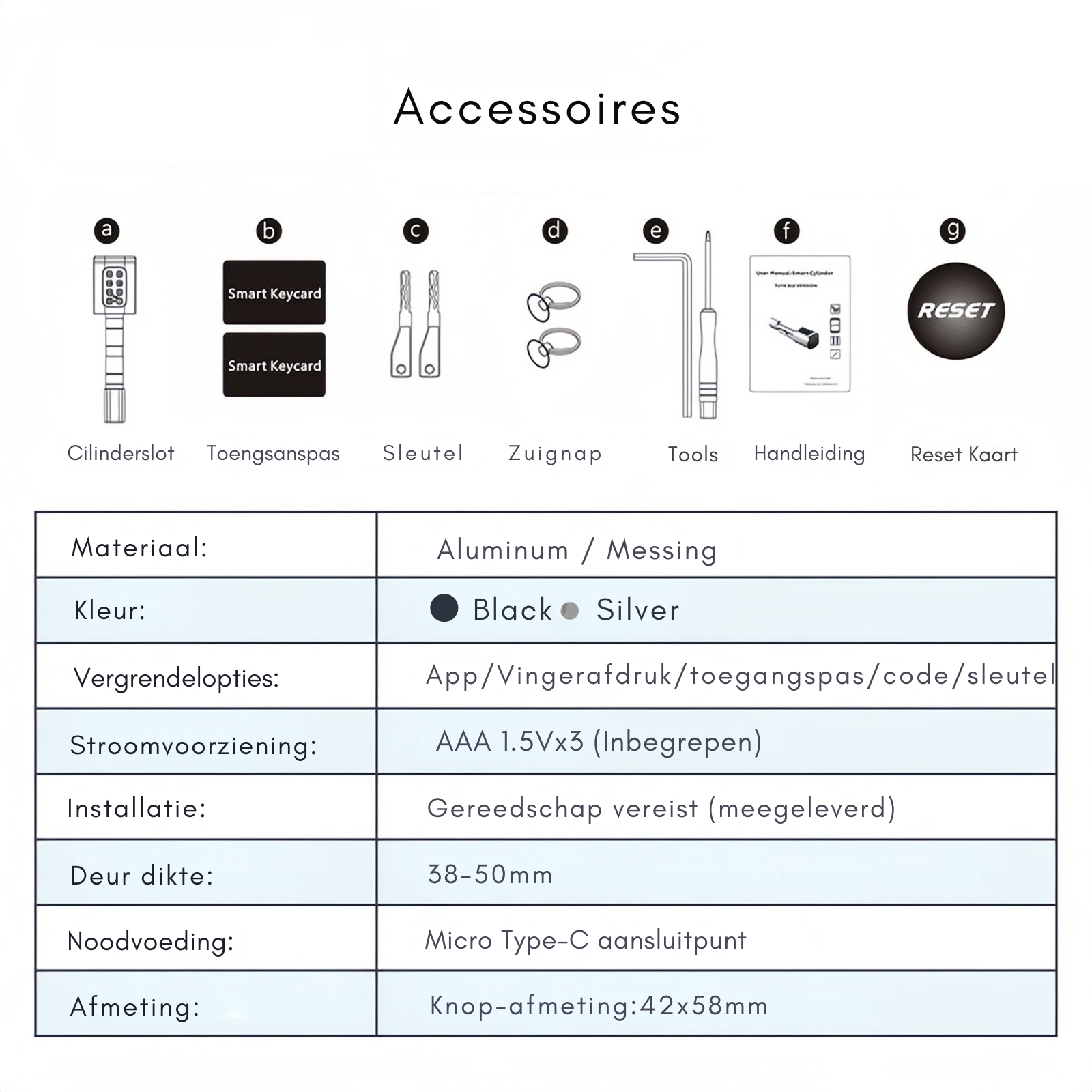 🔋 Altijd noodtoegang: via USB-C noodvoeding of de meegeleverde mechanische sleutel.